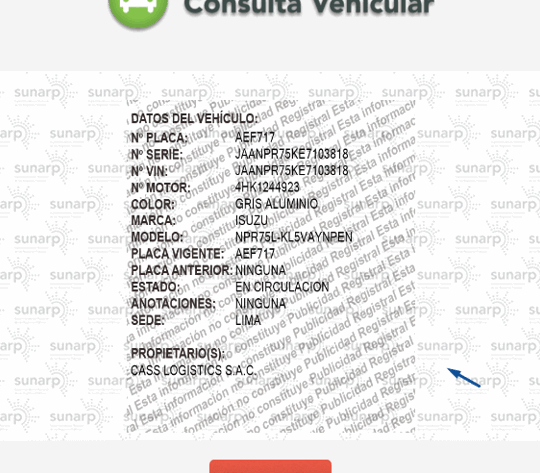 Información detallada que se obtiene en la consulta vehicular de SUNARP